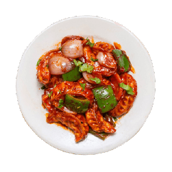 MoMo Sauted With Spicy Tangy Sauce, Onion, Capsicum & Garlic-Ginger